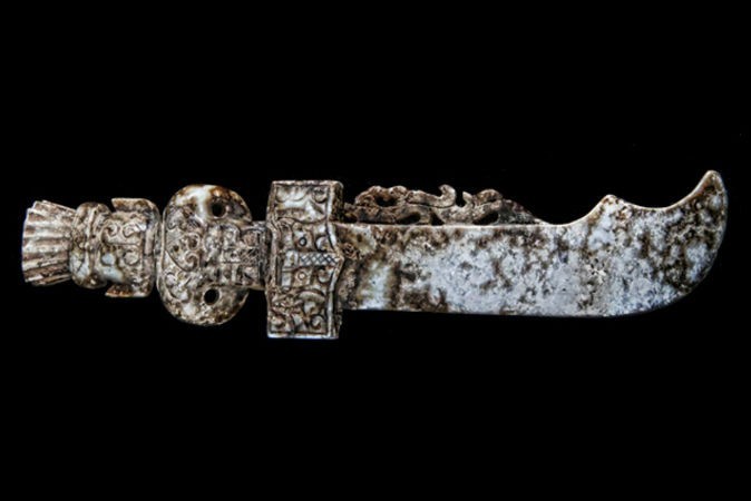 Более определённо распознаны многочисленные символы и размер меча, которые являются типичными для раскопанных нефритовых объектов династий Ся (2070–1600 гг. до н.э.), Шан (1600–1046 гг. до н.э.) и Чжоу (1046–256 гг. до н.э.).