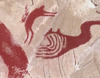 Выяснилось, что «птеродактиль» это не единое изображение, а несколько разных полустертых рисунков, которые не соприкасаются друг с другом: большой человеческой фигуры с хвостом и головой с двумя крупными глазами, маленькой человеческой фигуры с вытянутыми руками, собаки, овцы и змеевидного изображения.