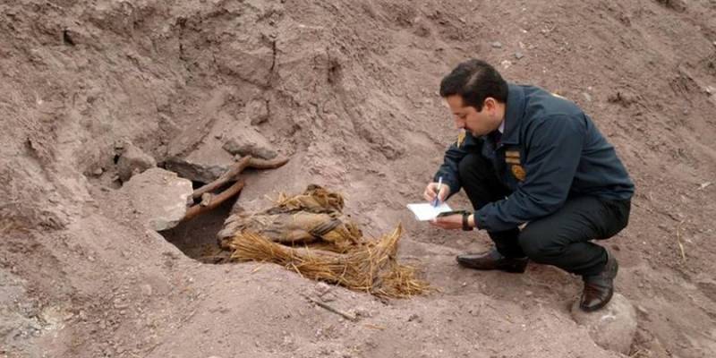 Рабочие как обычно обрабатывали землю, когда случайно натолкнулись на древнее захоронение, в котором также найдены изделия из керамики и детские игрушки. По словам археологов, они относятся к доколумбовой культуре Копьяпо. Ее представители населяли территорию современного чилийского региона Атакама с 1000 по 1400 годы.