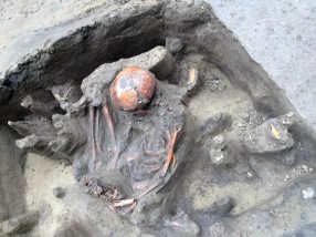 «По размеру черепа это, скорее всего, подросток. Его тело было посыпано красной глиной, которая отождествлялась у древних людей с кровью. Рядом со скелетом человека обнаружили рыбу-скелет.