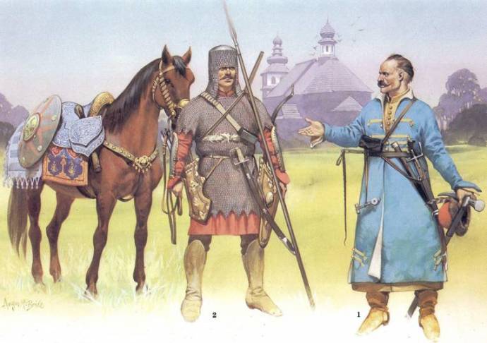 Реестровые казаки жили не на Днепре, а в городке Трахтемирове Киевского воеводства. Там находились их казна, арсенал, архивы и госпиталь. Настоящих запорожцев они презрительно именовали «голыт-венными казаками» - от слова «голытьба». Польская корона тоже не признавала вольное казачество днепровских порогов, хотя использовала их для военных походов, совместно с реестровыми казаками. Получилось, что одновременно существовали две Запорожские Сечи: официальное реестровое войско и дикая днепровская вольница, получившая название «низового казачества». И те и другие настоящими, разумеется, считали себя, а оппонентов именовали самозванцами.