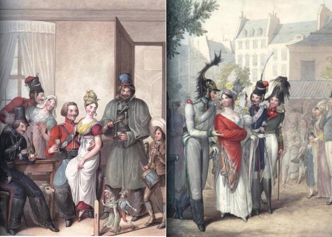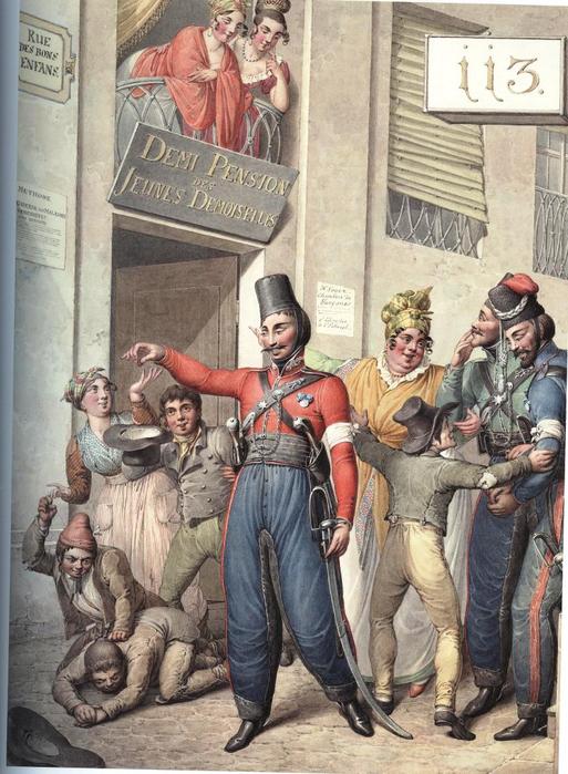 Несмотря на это, казаки пользовались успехом у женщин, особенно простолюдинок, правда, были они не слишком галантны: тискали изящные ручки парижанок своими медвежьими ручищами, наступали на ноги посетителям Лувра и Папе-Рояля. Вот и приходилось француженкам учить их обхождению.