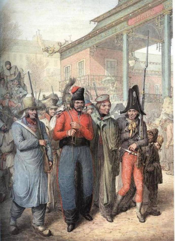Жители столицы с изумлением наблюдали, как эти бородатые огромные мужики расхаживают в своих шароварах с лампасами по залам Лувра или объедаются мороженым на бульварах. Тем не менее парижские модники очень скоро отпустили себе бороды «под казаков» и стали носить ножи на широких ремнях, как у казаков.